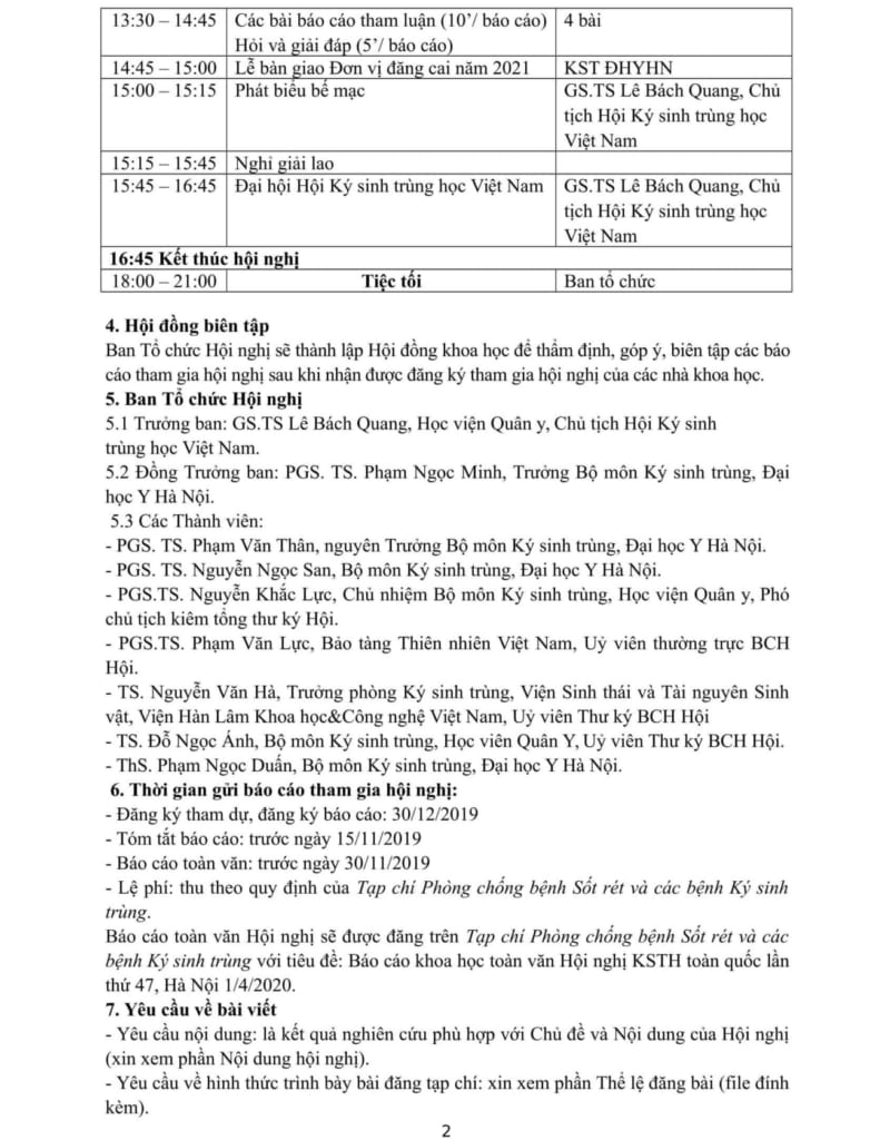 THÔNG BÁO SỐ 2 – HỘI NGHỊ KÝ SINH TRÙNG HỌC TOÀN QUỐC LẦN THỨ 47