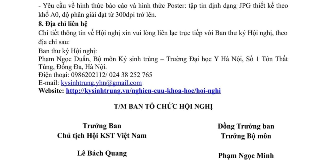 Hội Ký sinh trùng Việt Nam xin trân trọng gửi tới quý đồng nghiệp và các nhà khoa học Thông báo số 2 – Hội nghị Ký sinh trùng học Toàn quốc lần thứ 47. Rất mong quý đồng nghiệp và các nhà khoa học qua tâm gửi bài tham luận tới Hội nghị. Các bài toàn văn có chất lượng sẽ được đăng tải trên tạp chí khoa học chuyên ngành có phản biện.