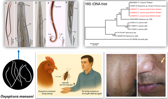 Nguồn: Pham ND*, Hoang VN, Dung BT, Nawa Y (2025). First confirmation of the chicken eyeworm, Oxyspirura mansoni, as a causative pathogen of human cutaneous larva migrans by morphological and molecular evidence. Parasitology Research. https://doi.org/10.1007/s00436-025-08473-5